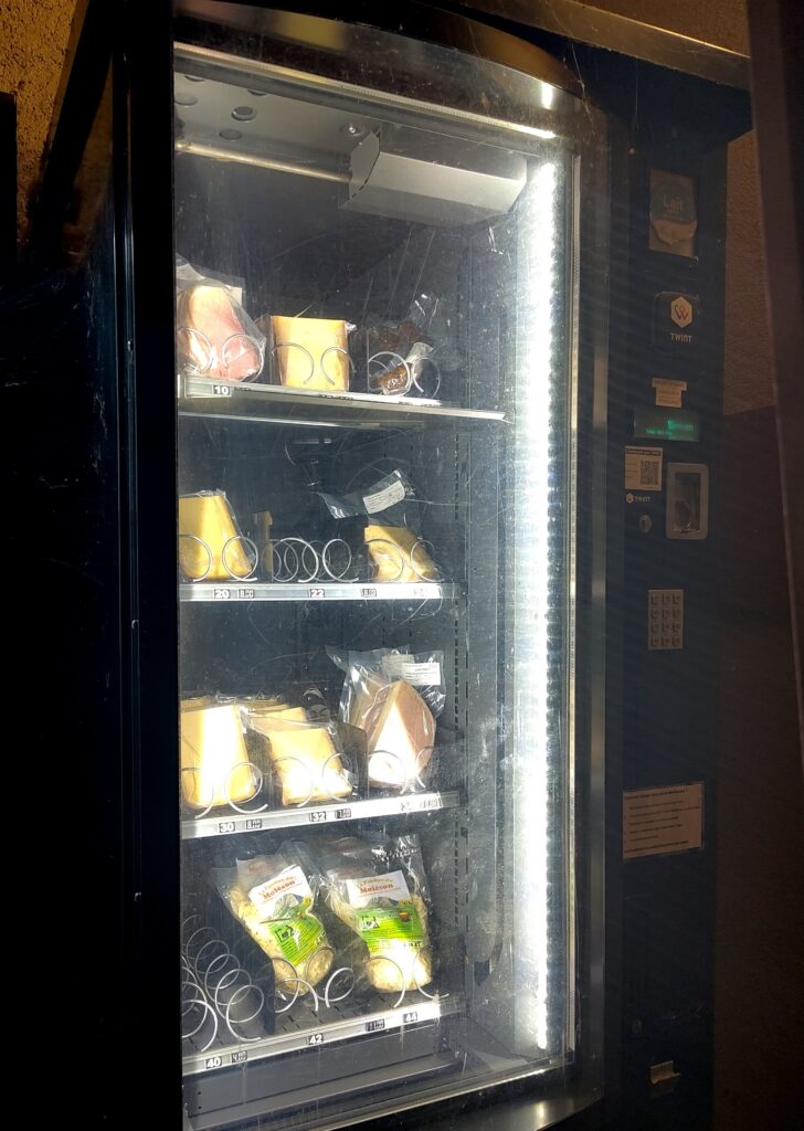Quand la nuit est tombée alors que nous étions encore au milieu de la forêt j’ai senti le poids du regard accusateur de Maël sur mes épaules : « si on finit bouffés par les loups ce sera de TA faute ». Heureusement, la forêt en question hébergeait davantage de gens qui faisaient un feu de camp en bord de rivière que de loups. Nous avons tout de même pressé le pas jusqu’au superbe pont en bois couvert qui nous ramenait vers l’aréodrome et la civilisation. Sur le chemin, nous avons croisé un fleuron de la technologie suisse : le distributeur automatique à fromage, ainsi qu’un CRATEUR.