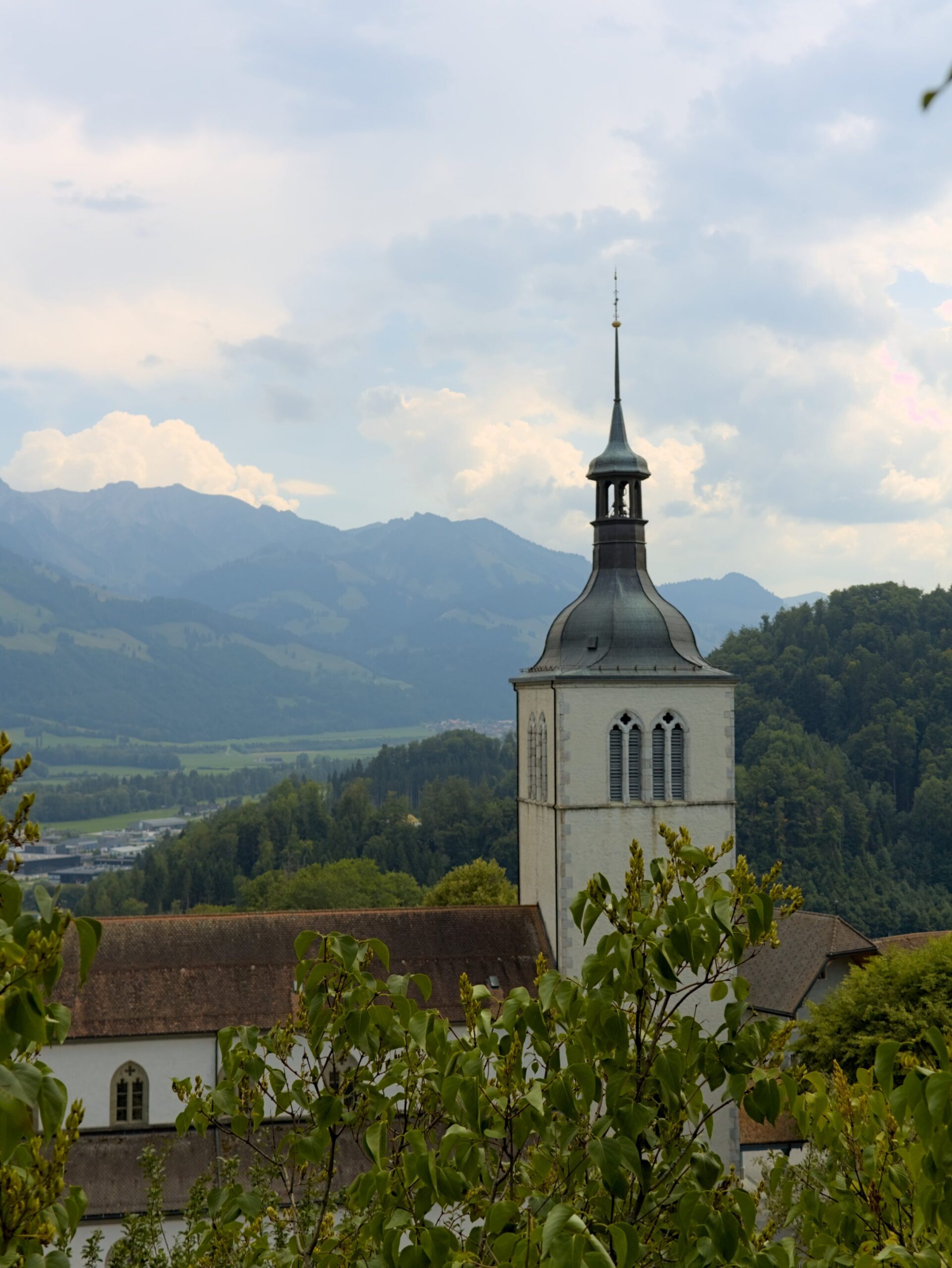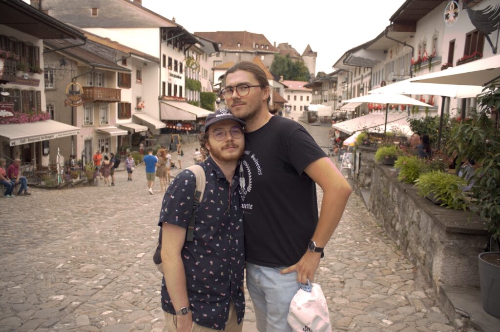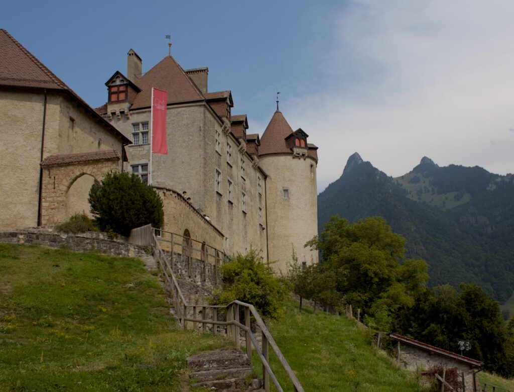 Nous nous sommes (un peu) extirpés de la foule en montant au chateau de Gruyère, tout en rondeurs, en pierres crèmes et en tuiles hexagonales, qui veille sur la vallée avec une tranquilité débonnaire. Après avoir constaté du haut du chemin de ronde qu’aucune tentative d’invasion n’était en cours sur la région de La Gruyère (déçus mais pas surpris), nous avons continué notre balade sous un timide soleil. L’air était doux, les oiseaux chantaient, les feuilles des arbres bruissaient doucement sous une brise tiède, pendant que nos pas foulaient les pierres centenaires pavant les ruelles discrètes ; seul le murmure des fontaines troublait la quiétude environnante. Un sentiment profond de félicité et de sérénité emplissait notre esprit, alors que nous retrouvions innocence, candeur, et paix.